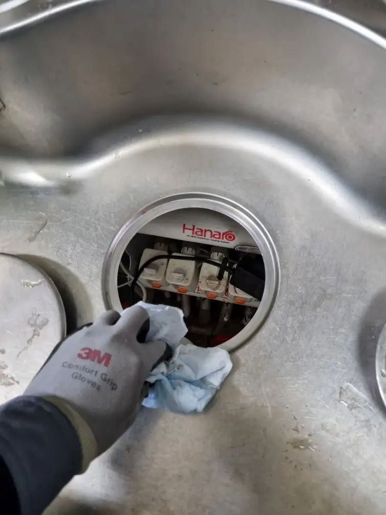 배수구통을 제거한 후 싱크대 배수구 주변을 깨끗하게 청소합니다. 오래된 실리콘이나 패킹 잔여물을 완전히 제거해야 새 배수구통을 설치할 때 밀착이 잘 됩니다. 배수관 입구도 함께 청소하면 배수 효율이 높아집니다.